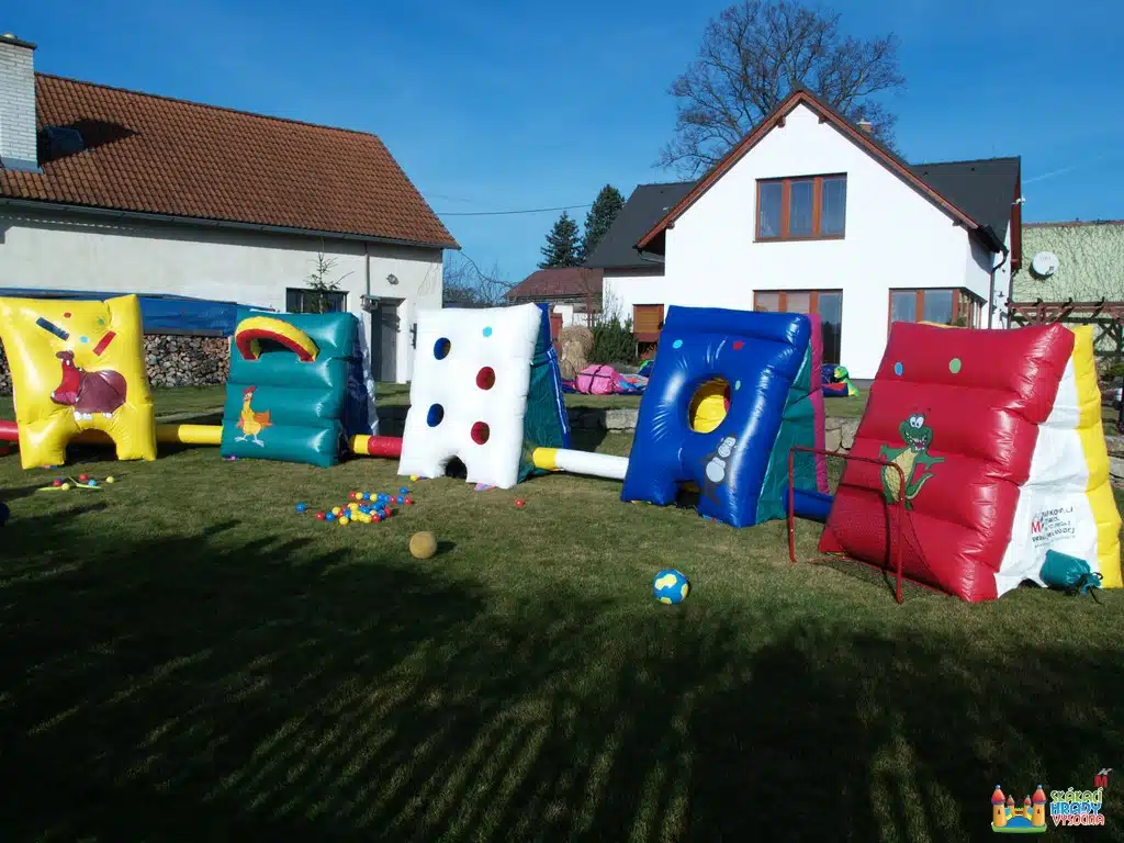 Nafukovací atrakce divoké tečce nabízí různé dovednostní disciplíny. Děti si mohou zaházet na různé cíle.Příslušenství – hokejky, házecí míčky, míč na házení do basketbalového koše, branka vč. míče.