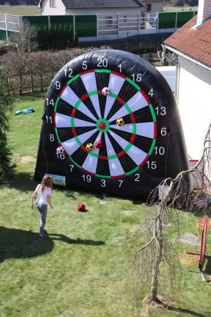 Nafukovací fotbalový terč je soutěžní atrakce, se kterou si užijete spoustu legrace. Balóny se přichytí na terči ze suchého zipu. Baví děti a baví především dospělé. Součástí je 6x míč.